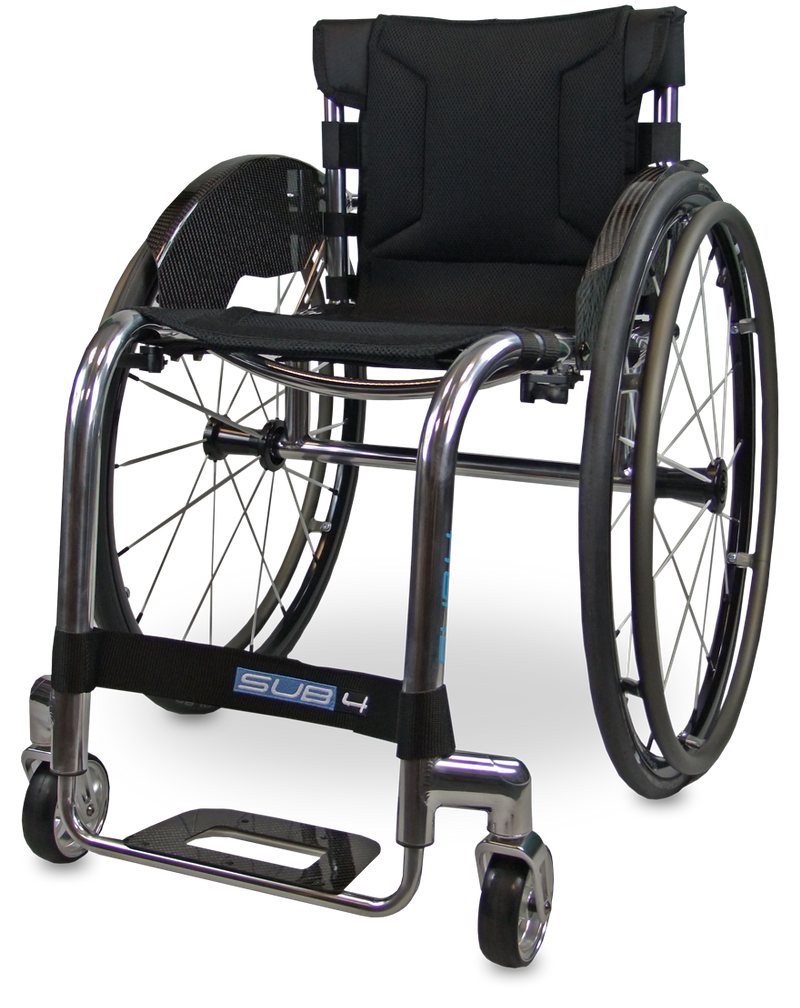 By embracing marginal gains technology, the Tiga Sub4 has been created as an unparalleled ultra-lightweight wheelchair. A completely unique Sub4 upholstery, shortened axle and pin setup, specially designed froglegs super light castors and corrosion resistant titanium fasteners, the Tiga Sub4 is as smart as it is beautiful. Technical specifications: Made to measure Less than 4kg guaranteed* (excluding wheels and cushion) Rigid and lightweight Aluminium 7020 frame Optimised hollow forged castor arm Low profile cross braces Optimised single tube design Max user weight 100kg Only the best materials are used in your Tiga Sub4. Aluminium is famous for its strength, durability and is synonymous with lightness. The utmost best performance of your chair is ensured by only using elements produced by market leaders, alongside a staggering 19 quality checks throughout the build, from measure to handover. Unrivalled performance: Optimised biomechanics for maximum power and efficiency Perfect toe in toe out for minimum drag Rigid and lightweight frame for pushing efficiency Super light Froglegs castors, 4” x 1.25” with aluminium centre Aerospace grade aluminium as standard