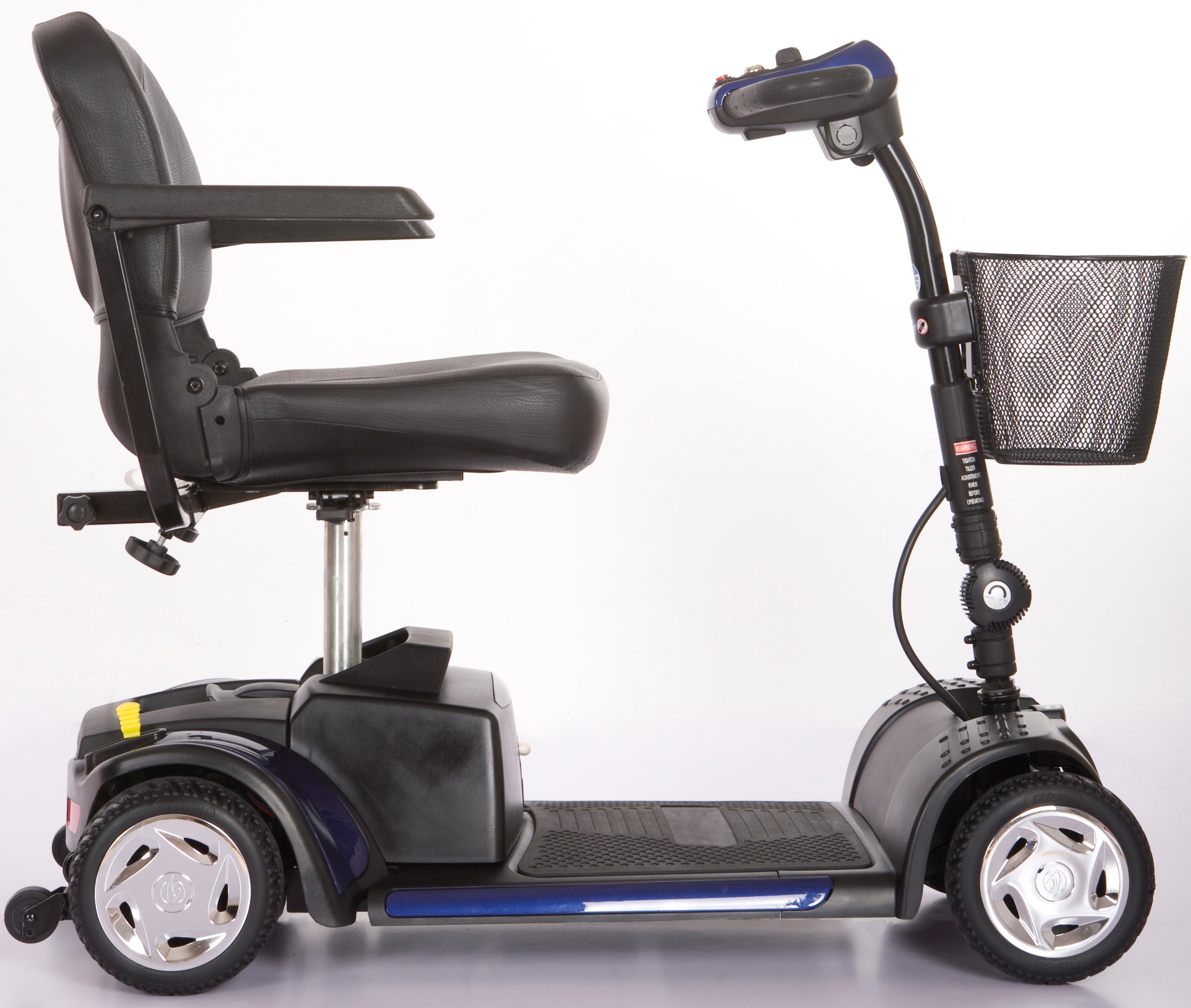 The Quality Life Technologies QS0831BS/0841BS is the smallest, lightest, and most portable scooter to get you were you want to go in comfort and style! Offered in both 3-wheel and 4-wheel models, this sporty design features a lightweight, stadium style seat, a weight capacity of 300 lbs., and increased foot room. It also has a charger port in the tiller and color through shrouds. Enjoy its tight indoor maneuverability and smooth outdoor ride with 2.5”of ground clearance.