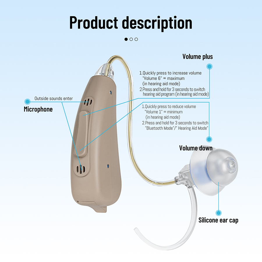 This hearing aid is a digital 16 channel, EQ32 channel RIC style, suitable for people with moderate to severe hearing loss.