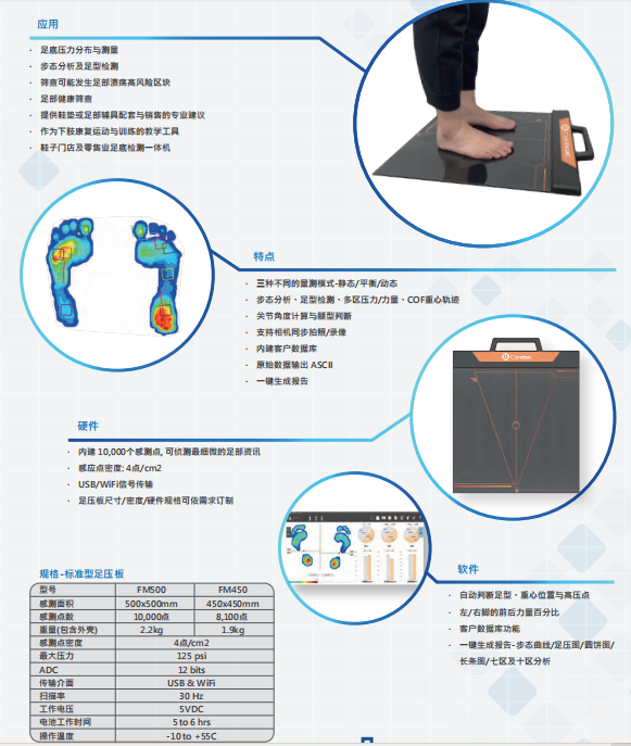 MEMS TECHNOLOGY CORP has developed pressure distribution measurement products with more than 20 years of industry experience, including portable foot pressure plates, insole foot pressure analyzers, walkway foot pressure analyzers, and human body pressure distribution measurement systems, which are designed to provide high-performance pressure analysis tools for users in the fields of rehabilitation medicine, rehabilitation aids, sports, and scientific research. Usage scenarios include and are not limited to: before and after rehabilitation treatment, data basis for orthopedic insole customization, scientific training assistance for athletes, sports biomechanics data collection, and so on.
