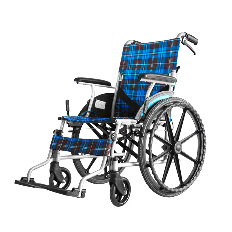 Hubang manual wheelchair L33, the frame is made of aluminum alloy, the whole vehicle weighs only 11KG, can be carried with one hand, has movable legs, is foldable and compact, does not take up space, and can be stored in narrow spaces.