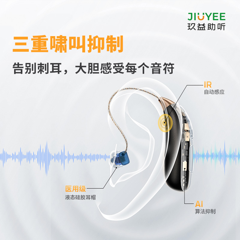 JIUYEE Medical-Grade Smart Bluetooth Behind-the-Ear Hearing Aid (RIC P2 Ultra Power) Designed for severe to profound hearing loss. Built with JIUYEE’s original “Tri-Core System Technology”, it provides 80 dB full-scale gain, a 140 dB maximum sound pressure level, 64-channel WDRC with AI noise reduction technology, and supports at-home hearing test and fitting in just 5–8 minutes. With IP67 water resistance and 140 hours of long battery life, it ensures clear, powerful, and comfortable communication in all environments.
