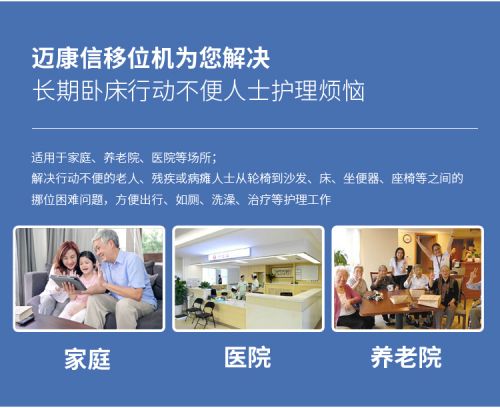 多功能移位機(jī)——有效解決了行動(dòng)不便人士在沙發(fā)、床、坐便器、座椅等之間相互移位的痛點(diǎn),以提高行動(dòng)不便人士的生活質(zhì)量。護(hù)理人員通過(guò)使用移位機(jī)可以大大減輕了工作強(qiáng)度,提高了護(hù)理效率,項(xiàng)目產(chǎn)品可以解放勞動(dòng)力或者減輕護(hù)理人員的負(fù)擔(dān)。