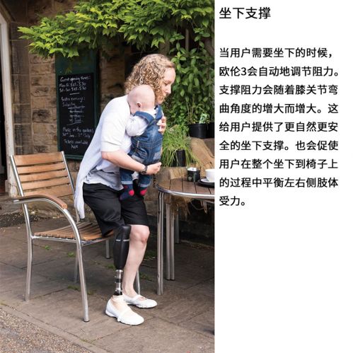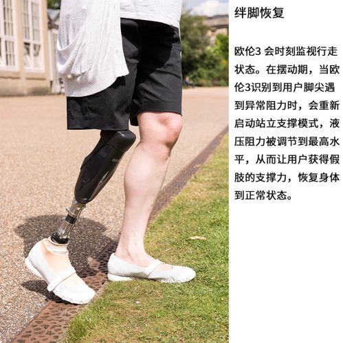 歐倫3代全智能膝關(guān)節(jié)采用了動作智能系統(tǒng),新增單車模式、站立鎖定省力功能,更安全的和最佳的漸進(jìn)步速控制特點,它的新一代傳感器實時感應(yīng)膝關(guān)節(jié)的動作情況,并快速對數(shù)據(jù)進(jìn)行處理和反饋。由于歐倫三代會依據(jù)關(guān)節(jié)屈曲的角度的增加而增加支撐阻力,因此支撐穩(wěn)定性能與安全性能得以大大提高,是其他智能關(guān)節(jié)所不具備的。在行走時,它的微處理器會控制氣壓輸出部分,對擺動期中的不同步速提供良好的控制,無論快速還是漫步;