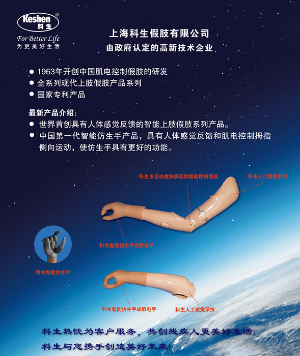"世界首創(chuàng)有人體感覺反饋智能仿生假肢產(chǎn)品。 手部為智能仿生手或二維拇指肌電手。 不依賴視覺,可感覺握物和握力大小。 各關節(jié)包括手、腕、肘智能協(xié)同動作,使高位截肢者也能自如取食、吃飯,使用方便。 可藍牙多功能設置。 國家專利產(chǎn)品。"