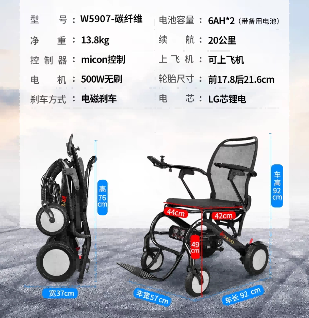 整車采用碳纖材料,車架輕,便攜帶 使用人群:摔傷、截癱、下肢癱瘓 手動/電動可相互切換,助力長途出行