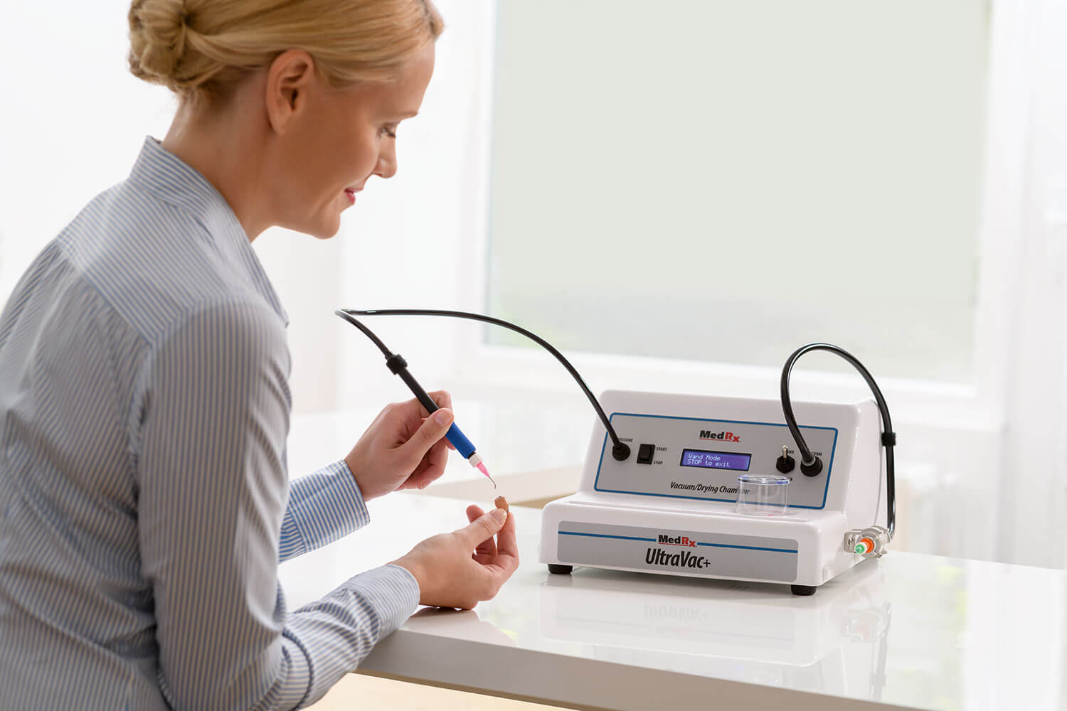 全新升級的UltraVac+助聽器保養(yǎng)儀專為呵護助聽器而生,外形更加簡潔美觀,除塵和干燥兩大功能獨立工作。除塵功能分吸塵與除塵兩個手柄,經(jīng)過嚴格計算的風(fēng)力在確保清潔功能的同時,還能避免損壞助聽器的元器件。干燥功能通過真空進行干燥,4分鐘快速干燥,并且在干燥結(jié)束時為避免泄壓過快損傷助聽器,專門進行了緩慢泄壓的設(shè)計。設(shè)計的細節(jié)均為延長助聽器使用壽命,是您做助聽器保養(yǎng)工作的一位優(yōu)秀搭檔。