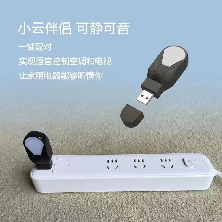 替代傳統(tǒng)遙控器,語音調(diào)節(jié)空調(diào)、電視、風(fēng)扇等。任意USB接口即插即用,充電寶、手機轉(zhuǎn)接頭均可供電,方便視障者等隨身攜帶控制空調(diào)等家電。