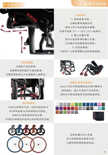 Neon2 是一臺將個性化、多功能可調(diào)節(jié)、便攜性融入于現(xiàn)代化設計的開放式折疊輪椅,車架的交叉桿和座椅管的加固設計給用戶提供了一個可與剛性車架輪椅媲美的騎乘性能。