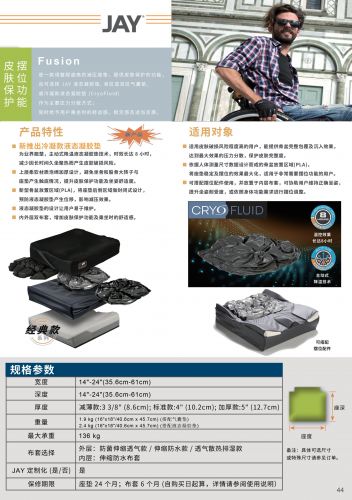 Fusion Cryo為新推出冷凝款液態(tài)凝膠墊,為業(yè)界翹楚,主動(dòng)式降溫液態(tài)凝膠墊技術(shù),時(shí)效長達(dá)8小時(shí),減少因長時(shí)間久坐聚熱而產(chǎn)生皮膚破損風(fēng)險(xiǎn)。 Fusion 有液態(tài)凝膠、單區(qū)氣囊和雙區(qū)氣囊配置選擇,是一款提升皮膚保護(hù)以及坐姿擺位舒適度的減壓座墊。 可接受定制,據(jù)尺寸聯(lián)系廠商。