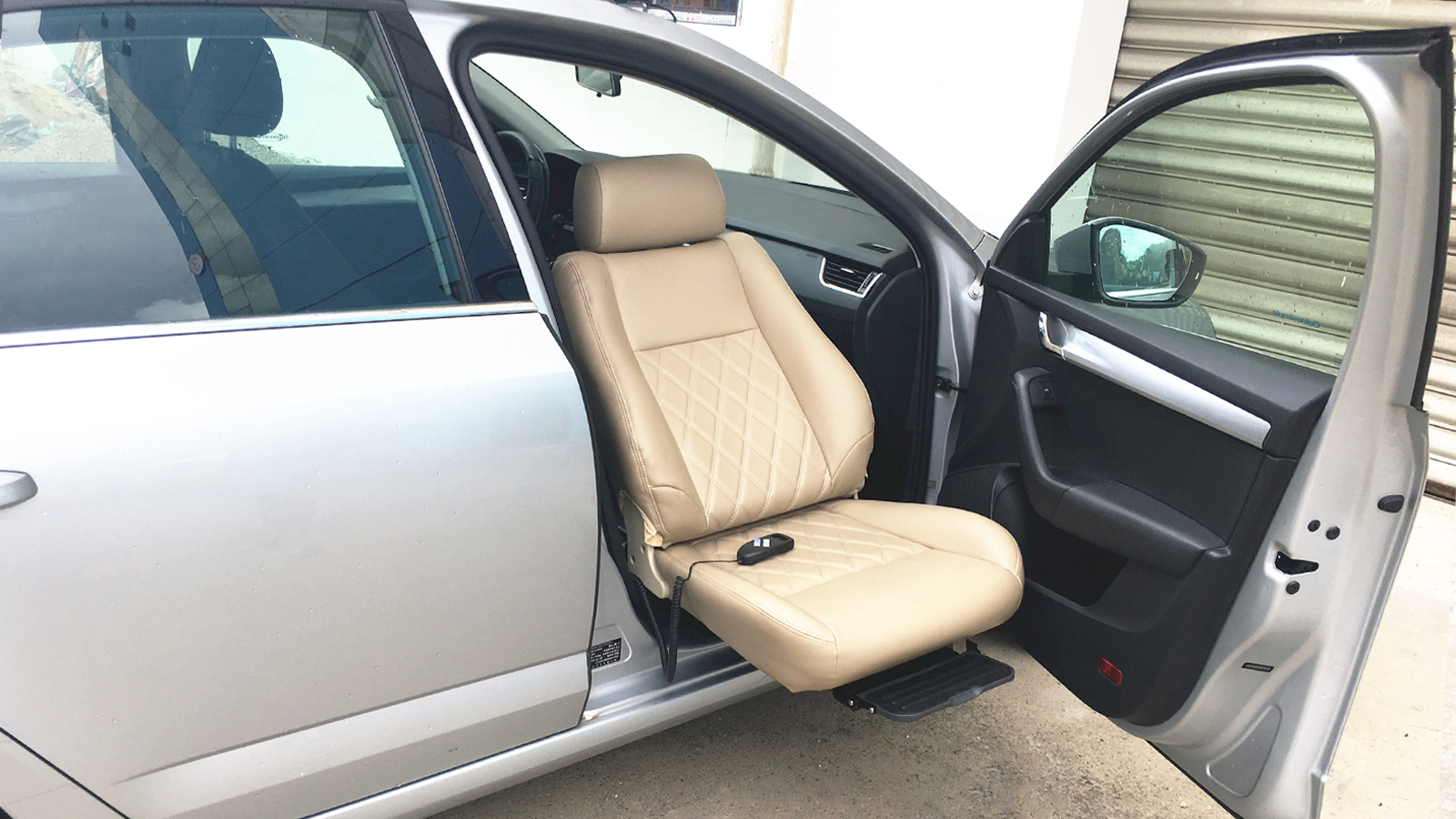 SOUT Pro旋轉(zhuǎn)福祉座椅為電驅(qū)動(dòng),安裝在原車座椅位置,可將座椅旋轉(zhuǎn)出車外并向前伸出,方便殘疾人或老年人上下車。旋轉(zhuǎn)路徑可編程,可適用于大部分轎車。全部動(dòng)作由標(biāo)準(zhǔn)手持開關(guān)或手機(jī)APP控制。該產(chǎn)品有左旋(駕駛員座椅)和右旋(副駕座椅)兩款可供您選擇。 可編程模式:通過(guò)手持開關(guān)對(duì)座椅的旋轉(zhuǎn)路徑、前后移動(dòng)、座椅靠背角度進(jìn)行程序編程設(shè)置,程序設(shè)置完成后可自動(dòng)運(yùn)行;
