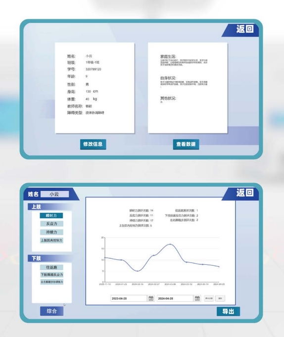 運(yùn)動(dòng)康復(fù)評(píng)估訓(xùn)練系統(tǒng)采用自適應(yīng)學(xué)習(xí)引擎、數(shù)據(jù)分析引擎等核心技術(shù),配合可觸式傳感器及柔性透光材質(zhì),營(yíng)造科學(xué)、安全、真實(shí)的訓(xùn)練場(chǎng)景,對(duì)兒童的肢體運(yùn)動(dòng)能力進(jìn)行全面評(píng)估與針對(duì)性訓(xùn)練。 系統(tǒng)內(nèi)置評(píng)估功能,康復(fù)師可針對(duì)每一名兒童進(jìn)行系統(tǒng)評(píng)估,例如瞬時(shí)力、持續(xù)力、反應(yīng)速度、耐力、上下肢肌力平衡性、協(xié)調(diào)性等進(jìn)行科學(xué)的評(píng)估。大數(shù)據(jù)引擎可對(duì)評(píng)估結(jié)果進(jìn)行對(duì)比與分析,自動(dòng)生成評(píng)估報(bào)告,各項(xiàng)功能指標(biāo)數(shù)據(jù)化、圖形化,一目了然