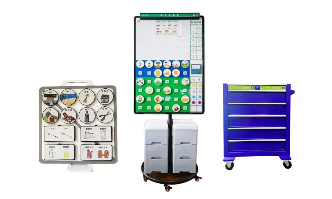 應(yīng)用場所:康復(fù)中心、干預(yù)中心、語訓(xùn)中心、介入工作室、培智學(xué)校。本產(chǎn)品在結(jié)構(gòu)化工作原理的基礎(chǔ)上,采用視覺支持,使用產(chǎn)品結(jié)構(gòu)的模塊化組合方式以及具有獨創(chuàng)的磁吸交流圖卡,方便更換進行結(jié)構(gòu)化教學(xué),一通過教授孩子新知識、新技能和新行為,讓他們適應(yīng)環(huán)境,適應(yīng)社會,二是通過對環(huán)境的改變和對活動流程的構(gòu)建等輔助手段,提高他們對環(huán)境的理解和適應(yīng)能力。