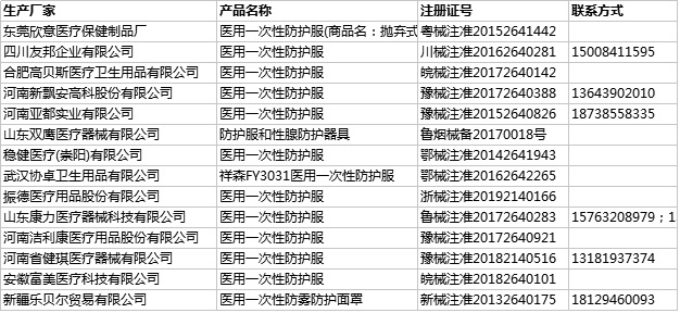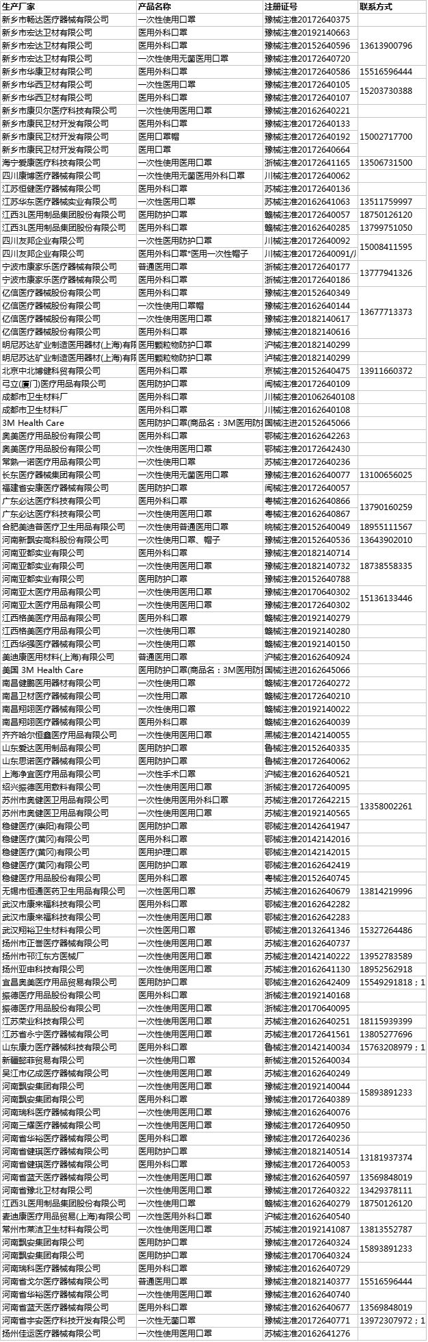 以下為口罩、防護(hù)服、消毒液等相關(guān)防護(hù)用品生產(chǎn)廠家信息匯總,供有需要的單位聯(lián)絡(luò)參考(*提醒:各采購(gòu)單位和個(gè)人務(wù)必不要以非醫(yī)用口罩等替代,但凡未經(jīng)藥監(jiān)局系統(tǒng)批準(zhǔn)的產(chǎn)品,都不具備醫(yī)用資質(zhì)和效果。)