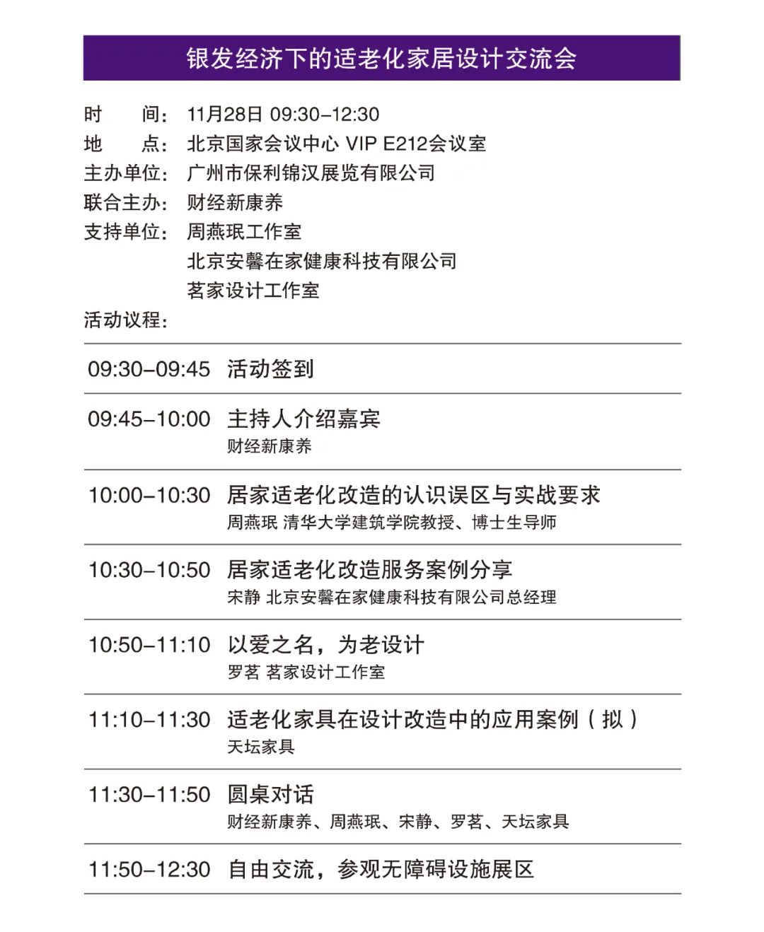 如果您對(duì)銀發(fā)經(jīng)濟(jì)、適老化改造、養(yǎng)老產(chǎn)業(yè)等話題感興趣,展會(huì)同期活動(dòng)歡迎您的參與!