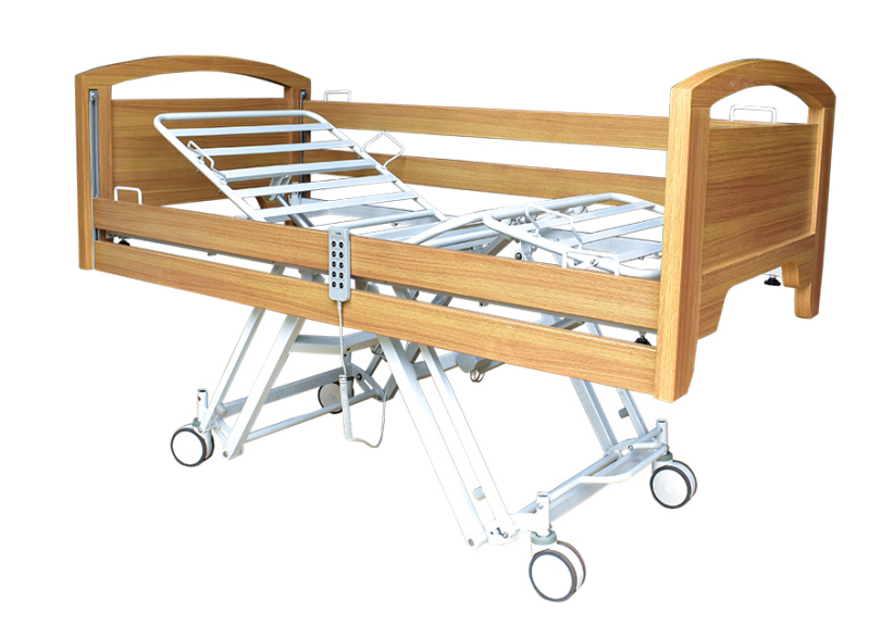 五功能電動(dòng)護(hù)理床,功能齊全,全面護(hù)理臥床患者,有起背,抬腿,高度調(diào)節(jié),床體前傾和后傾這五種功能,使日常護(hù)理更為便捷。木質(zhì)床頭尾板和護(hù)欄設(shè)計(jì)體現(xiàn)家居化,更舒適,更溫馨,搭配靜音萬(wàn)向腳輪使用更方便。