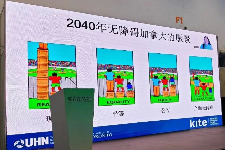 加拿大無障礙標(biāo)準(zhǔn)委員會(huì)下屬建筑環(huán)境無障礙標(biāo)準(zhǔn)技術(shù)委員會(huì)副主席,KITE研究所-University Health Network科學(xué)家和戰(zhàn)略合作伙伴主管,多倫多大學(xué)機(jī)械與工業(yè)工程系兼職教授Sophia Yue Li(李悅)作《沒有我們,何談我們》的主旨演講