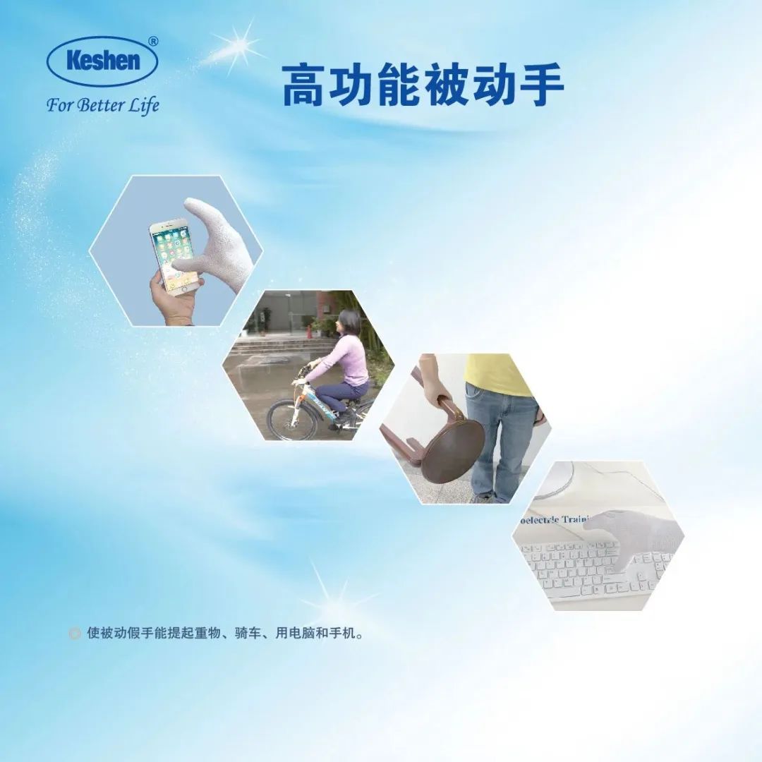 高功能被動(dòng)手可使裝飾性假手具有可實(shí)用抓握功能。只需按壓腕部便可張開假手,操作簡單,輕松方便。同時(shí)在按壓腕部開閉手的同時(shí),可在不同位置輕松鎖定假手。此外,該產(chǎn)品手型可變,可在手指放松的裝飾性假手形態(tài),和對指抓握狀態(tài)之間,方便地任意轉(zhuǎn)變。同時(shí),手指可在不同位置鎖定,使裝飾性假手能提物、騎車、用電腦和手機(jī)、持筆寫字。不僅如此,該產(chǎn)品重量輕,不需電池便可下水,使用簡單方便。