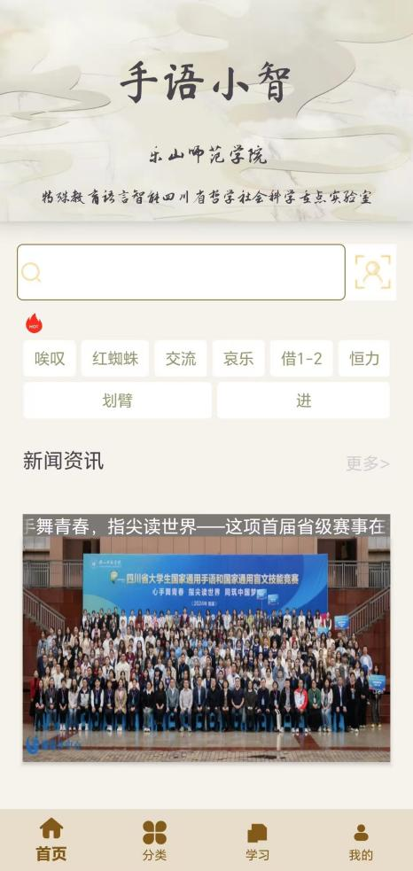手語小智App是樂山師范學院—特殊教育語言智能四川省哲學社會科學重點實驗室出品的一款國家通用手語學習平臺軟件,擁有完全獨立自主的知識產權。該App提供了完整的國家通用手語詞匯和學科手語詞匯的手語視頻語料(16000+手語詞匯視頻),供用戶查詢學習,并提供了國家通用手語的在線訓練功能。