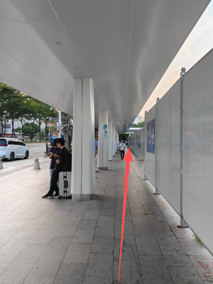 按照箭頭所指方向前行,轉(zhuǎn)右,約前行100米(與前文圖示路線一致),即可抵達【保利世貿(mào)博覽館E4門】。