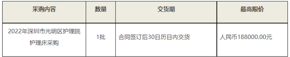 項(xiàng)目名稱:2022年深圳市光明區(qū)護(hù)理院護(hù)理床采購(gòu)