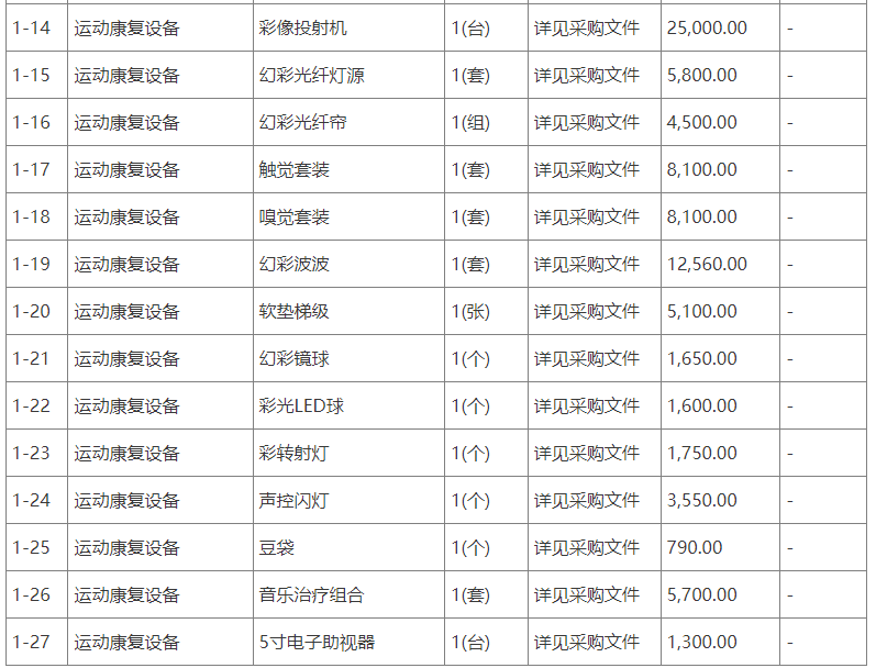 采購需求:運動康復(fù)、作業(yè)治療、言語吞咽治療、物理因子治療、傳統(tǒng)康復(fù)、疼痛科、產(chǎn)后康復(fù)等設(shè)備的采購安裝調(diào)試及相關(guān)伴隨服務(wù)。