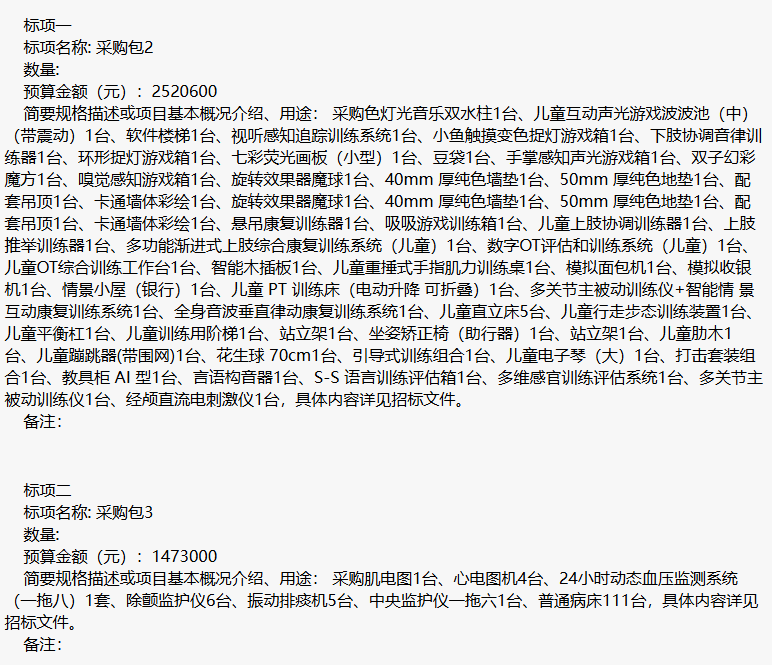 采購需求:上肢智能反饋訓練系統(tǒng)等設(shè)備采購,具體內(nèi)容、主要規(guī)格等詳見招標文件第三章采購需求。