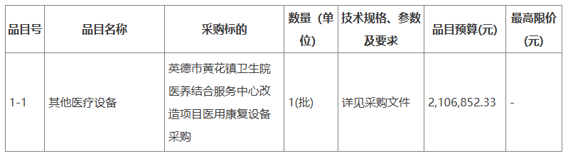 英德市黃花鎮(zhèn)衛(wèi)生院醫(yī)養(yǎng)結(jié)合服務中心改造項目醫(yī)用康復設(shè)備采購招標公告