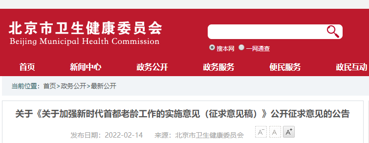 關(guān)于《關(guān)于加強(qiáng)新時(shí)代首都老齡工作的實(shí)施意見(征求意見稿)》公開征求意見的公告