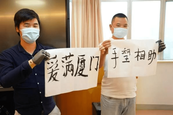 活動現(xiàn)場,幾位殘疾人朋友佩戴BrainCo強腦科技智能仿生手,手握毛筆寫下“愛滿廈門”、“手望相助”等字