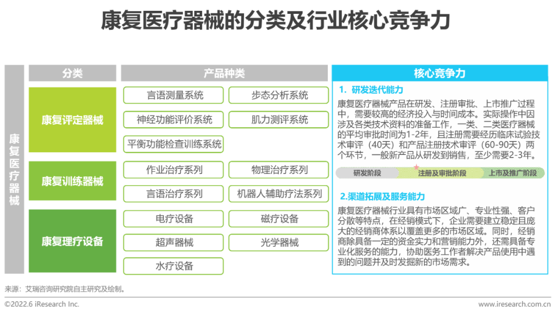 目前按照國際標(biāo)準(zhǔn)IS09999,康復(fù)器械產(chǎn)品可分為130個次類和781個支類,呈現(xiàn)種類繁多的特點。但下游客戶和需求較為分散,導(dǎo)致行業(yè)集中度較低,尚未形成規(guī)?;凝堫^企業(yè),但行業(yè)規(guī)模效應(yīng)的實現(xiàn)需要長時間的積累,對于企業(yè)而言存在一定的機(jī)遇點。市場對于康復(fù)醫(yī)療器械產(chǎn)品的需求日益旺盛且呈現(xiàn)多樣化,然而一項產(chǎn)品從研發(fā)到上市推廣至少需要2-3年,在這樣的行業(yè)特點和發(fā)展趨勢下,擁有優(yōu)異研發(fā)迭代能力的企業(yè)更具備優(yōu)勢;從銷售方面而言,康復(fù)醫(yī)療器械的客戶較為分散且行業(yè)專業(yè)性較強(qiáng),這要求企業(yè)具備緊貼行業(yè)需求的渠道營銷和服務(wù)能力以打通市場。