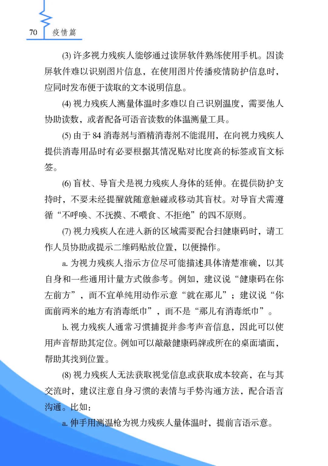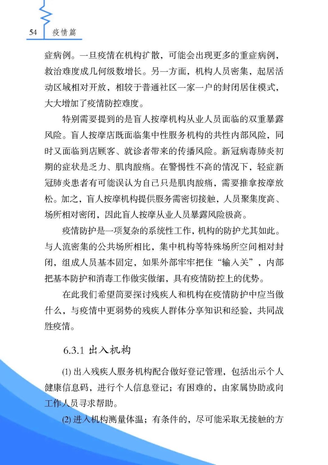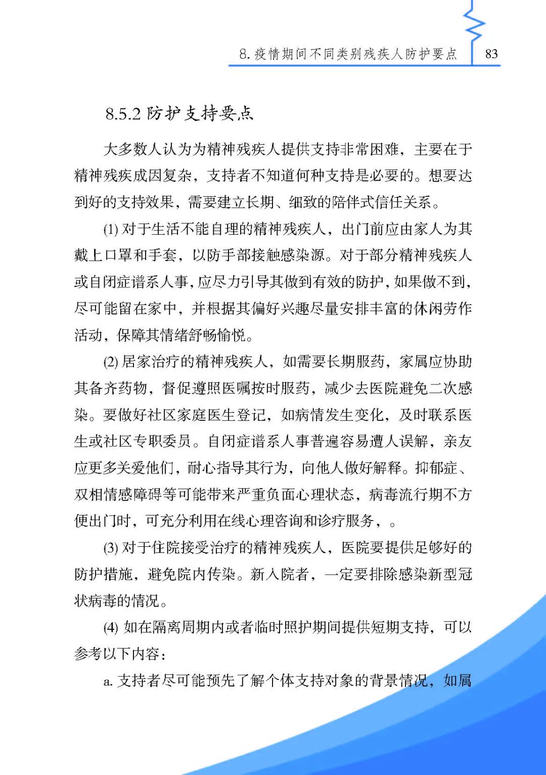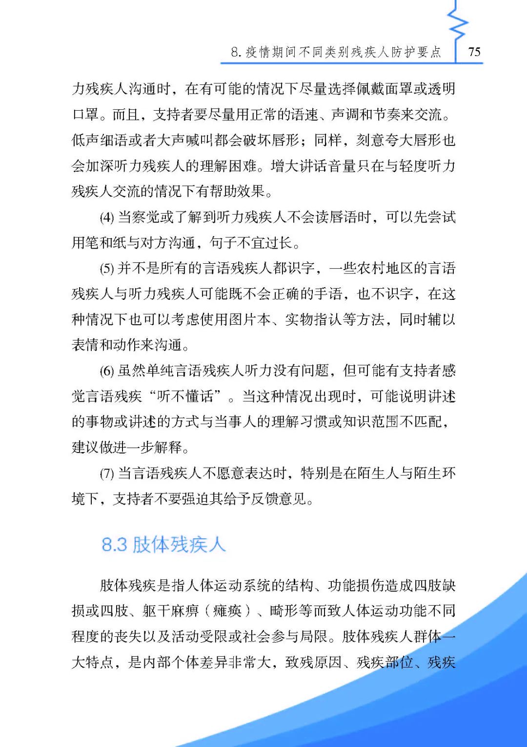 疫情給殘疾人帶來了身心健康、照護、經(jīng)濟等多方面的挑戰(zhàn),日常生活中,殘疾人應(yīng)如何做好防護呢?為做好殘疾人群體疫情防控工作,幫助殘疾人朋友科學(xué)防疫,當(dāng)好自己健康的第一責(zé)任人,中國殘疾人聯(lián)合會組織編寫了《殘疾人安全防護實用手冊·疫情篇》。