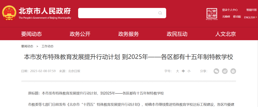 北京市教委等七部門(mén)近日發(fā)布的《北京市“十四五”特殊教育發(fā)展提升行動(dòng)計(jì)劃》明確,到2025年,北京市特殊教育體系進(jìn)一步完善,各區(qū)均要建有一所從幼兒園到高中全學(xué)段銜接的十五年制特殊教育學(xué)校,并根據(jù)不同學(xué)段、不同專(zhuān)業(yè)配足配齊特教教師。