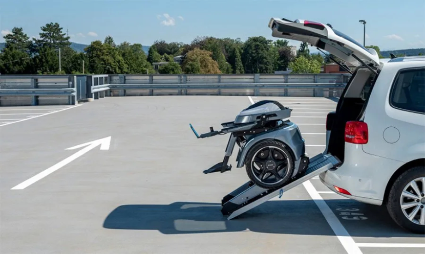 如果有遠(yuǎn)途出行的需求,這款電動(dòng)輪椅也非常方便攜帶。因?yàn)檩喴卧O(shè)有快速折疊機(jī)制,只需要一握就可以將它的靠背完全折疊起來(lái),讓輪椅的長(zhǎng)寬高分別變?yōu)?130/695/790mm的更緊湊尺寸。然后只需要一個(gè)滑軌,用戶就可以把這個(gè)重達(dá)162公斤的家伙塞進(jìn)汽車后備箱或是其他存儲(chǔ)空間內(nèi)。