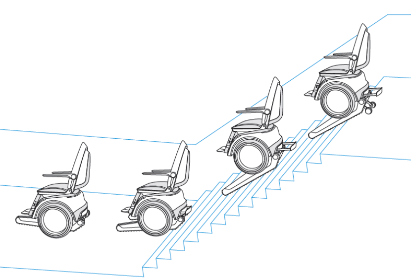 這款輪椅的先進(jìn)之處在于它不但具備自平衡功能,還能攜帶乘坐者輕松攀爬樓梯。