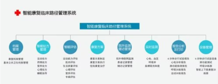 該系統(tǒng)可以收集和連接各種物聯(lián)網(wǎng)設(shè)備,支持相關(guān)醫(yī)療衛(wèi)生檢測(cè)設(shè)備的連接,支持心肺等康復(fù)訓(xùn)練設(shè)備的收集和連接,如6分鐘步行測(cè)試設(shè)備、肺功能測(cè)試、呼吸訓(xùn)練器、智能上下肢康復(fù)訓(xùn)練器等評(píng)估和康復(fù)訓(xùn)練設(shè)備,生成相關(guān)的分析數(shù)據(jù)報(bào)告。