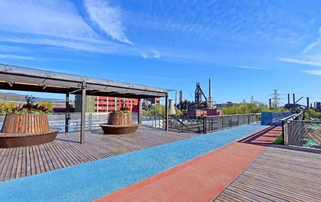 從老舊工業(yè)園轉身,只為未來休閑、商業(yè)兩相宜的可持續(xù)發(fā)展與宜居生活要素。高線公園是首鋼園區(qū)“地下-地面-空中”三級立體慢行系統(tǒng)的重要組成部分。其中,群明湖北側的空中步道長約670米,通過水體景觀和現(xiàn)有的管廊的結合設置雙層平臺。步道西部順接永定河濱河休閑公園,整體打造京西綠色生態(tài)健康廊道。
