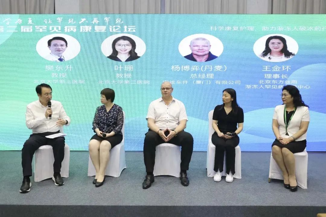 本次論壇分四個(gè)板塊,分別由北京大學(xué)第三醫(yī)院葉珊教授、安維車(chē)件(廈門(mén))有限公司楊博弈總經(jīng)理、北京東方絲雨漸凍人罕見(jiàn)病關(guān)愛(ài)中心王金環(huán)理事長(zhǎng)圍繞“科學(xué)康復(fù)護(hù)理,助力漸凍人破冰前行”;上海德達(dá)醫(yī)院簡(jiǎn)鍇陶教授、中國(guó)醫(yī)學(xué)科學(xué)院北京協(xié)和醫(yī)院戴榮平教授、北京康心馬凡綜合征關(guān)愛(ài)中心常繼國(guó)理事長(zhǎng)圍繞“康復(fù)前置,讓馬凡不再麻煩”;北京大學(xué)第三醫(yī)院劉小璇教授、中日友好醫(yī)院段曉慧教授、千里行CMT互助之家羅玉萍組織者圍繞“醫(yī)康融合,讓CMT獲得新生”;中國(guó)康復(fù)研究中心北京博愛(ài)醫(yī)院劉松懷教授、太陽(yáng)語(yǔ)心理專(zhuān)業(yè)督導(dǎo)韓笑專(zhuān)家、太陽(yáng)語(yǔ)罕見(jiàn)病心理關(guān)愛(ài)中心魏瑞紅理事長(zhǎng)圍繞“心理康復(fù),撫慰罕見(jiàn)”等四個(gè)方面,進(jìn)行了充分的論述和研討。