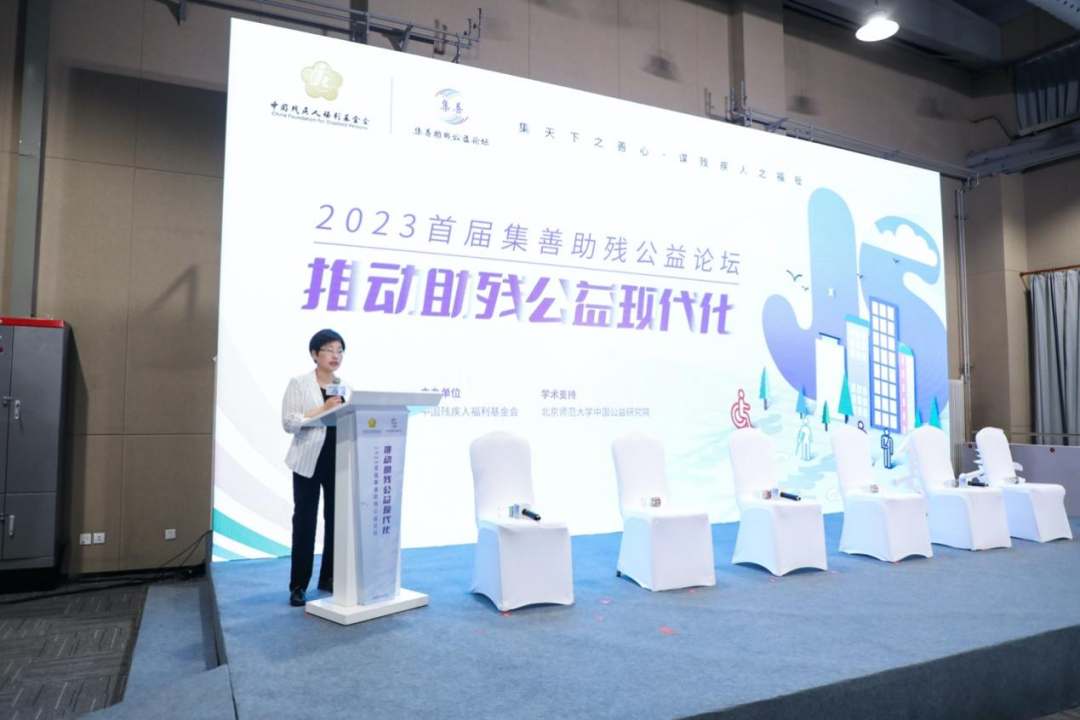 (中國殘疾人福利基金會副理事長兼秘書長周麗君主持首屆集善助殘公益論壇)