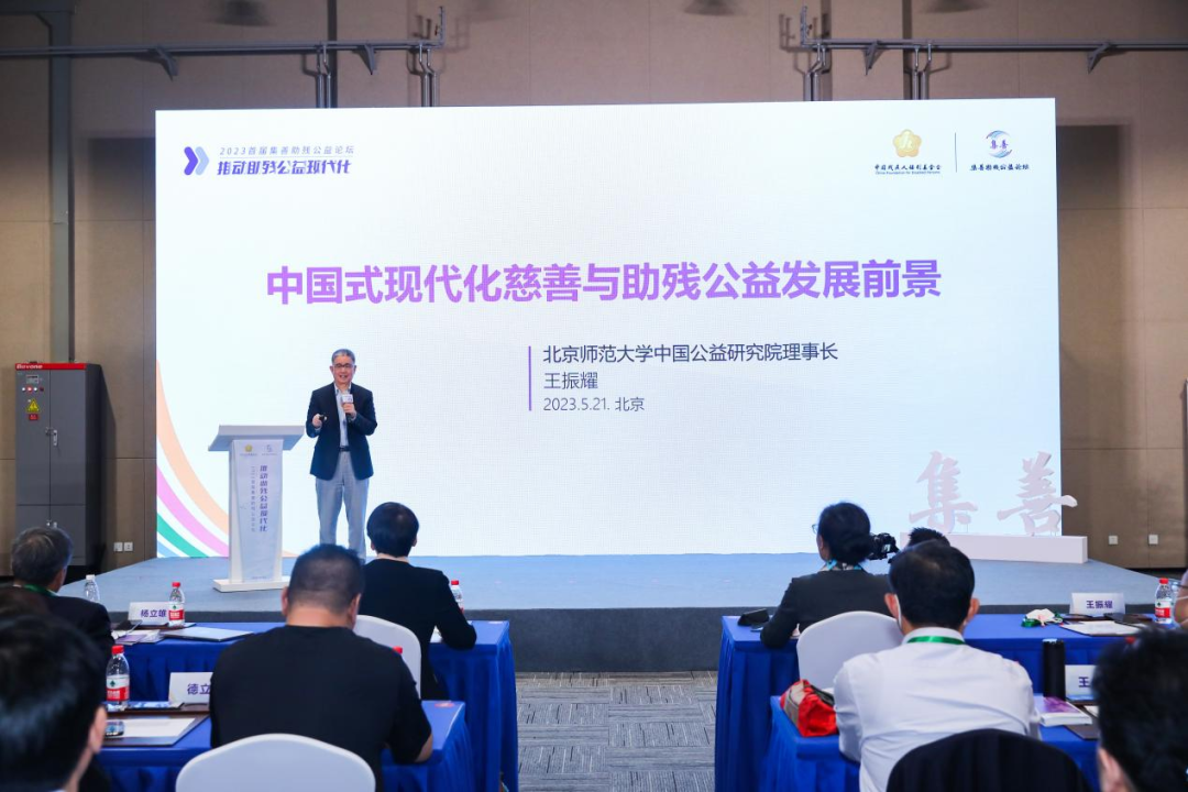 主旨演講環(huán)節(jié),北京師范大學(xué)中國公益研究院理事長王振耀以《中國式現(xiàn)代化慈善與助殘公益發(fā)展前景》為題進(jìn)行主旨演講,他指出,中國的公益事業(yè)正處于快速發(fā)展的階段,推動和實現(xiàn)助殘公益現(xiàn)代化需要政府、社會組織、企業(yè)等多方的共同努力。只有通過各方面的支持和合作,才能夠?qū)崿F(xiàn)助殘公益事業(yè)的現(xiàn)代化和可持續(xù)發(fā)展。