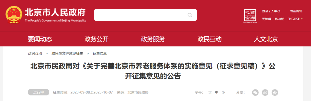 北京市民政局對(duì)《關(guān)于完善北京市養(yǎng)老服務(wù)體系的實(shí)施意見(征求意見稿)》公開征集意見的公告