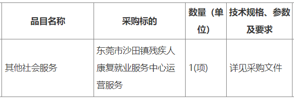 東莞市沙田鎮(zhèn)殘疾人康復(fù)就業(yè)服務(wù)中心運(yùn)營(yíng)服務(wù)招標(biāo)公告