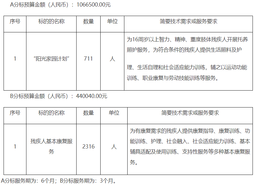 采購(gòu)需求:擬選定一家第三方服務(wù)機(jī)構(gòu),針對(duì)全縣精神三四級(jí)有康復(fù)意愿的119人進(jìn)行康復(fù)服務(wù)。