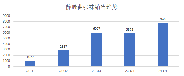 在瞄準(zhǔn)即時零售日常需求,覆蓋日常使用場景方面,康復(fù)之家選擇了靜脈曲張襪這一典型日常備貨。在2023年第二季度,康復(fù)之家即開始布局靜脈曲張襪產(chǎn)品,在價(jià)格帶上做了補(bǔ)充,同時擴(kuò)大鋪貨范圍,該品類銷售同樣大幅增長,24年第一季度體量已達(dá)到去年同期的7.5倍,獲得了即時零售業(yè)務(wù)的極大成功。