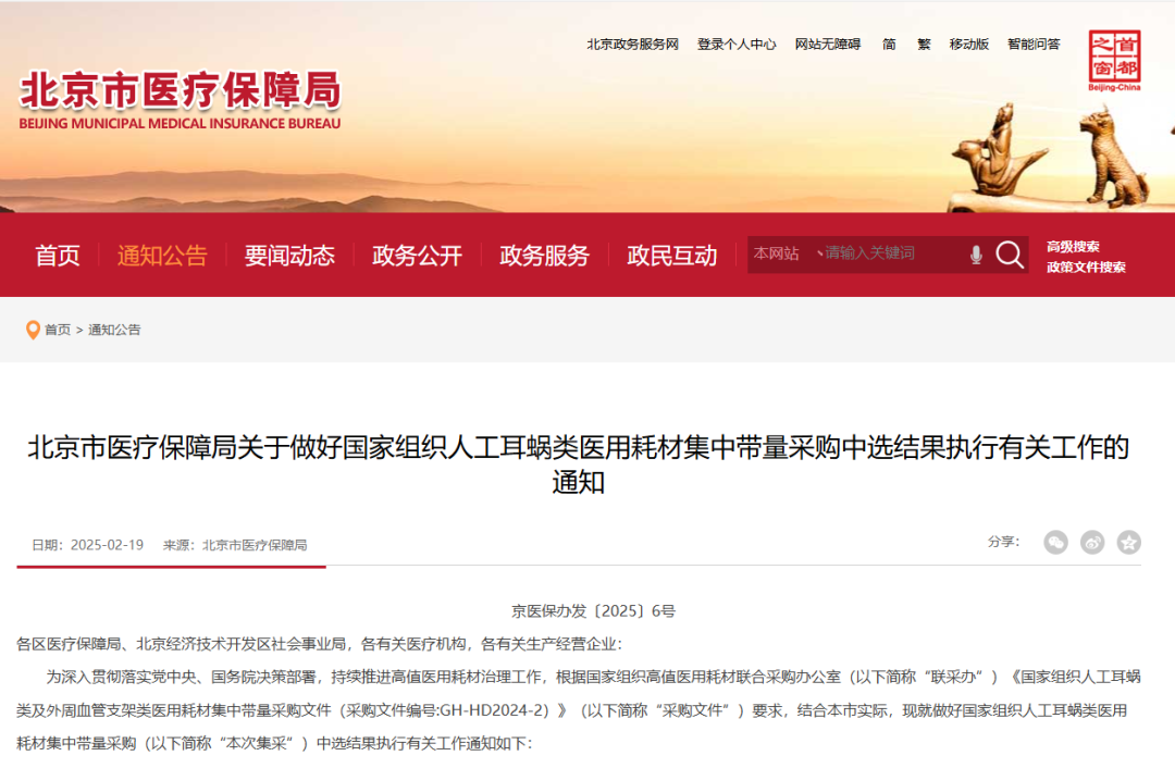 3月3日,天津市醫(yī)保局聯(lián)合有關(guān)部門發(fā)布了《關(guān)于執(zhí)行國家組織人工耳蝸類醫(yī)用耗材集采結(jié)果有關(guān)工作的通知》,自3月1日起,天津市相關(guān)患者可以使用上集采降價后的人工耳蝸中選產(chǎn)品,標志著國家集采人工耳蝸中選結(jié)果在津正式落地。