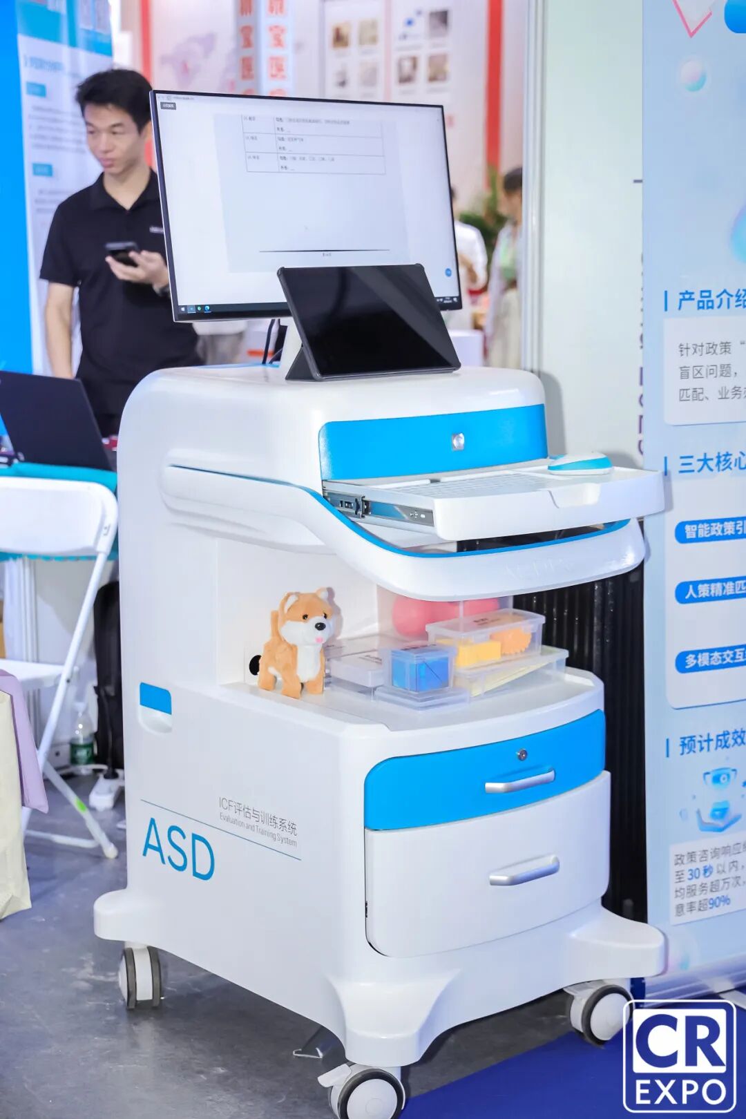 在合肥哈工艾斯德康智能科技有限公司展位,另一項(xiàng)“精準(zhǔn)康復(fù)” 技術(shù)——孤獨(dú)癥多模態(tài)智能化輔助診斷系統(tǒng)同樣引人關(guān)注。演示中,孩子只需佩戴簡(jiǎn)易腦電設(shè)備,系統(tǒng)就能通過(guò)分析腦電信號(hào)、結(jié)合行為評(píng)估數(shù)據(jù),在半小時(shí)內(nèi)給出初步診斷建議。“對(duì)孤獨(dú)癥兒童來(lái)說(shuō),‘早發(fā)現(xiàn)、早干預(yù)’至關(guān)重要。”研發(fā)人員表示,該系統(tǒng)已在全國(guó)20多家康復(fù)機(jī)構(gòu)試用,評(píng)估效率是傳統(tǒng)方式的10倍,能幫助更多孩子抓住康復(fù)“黃金期”。