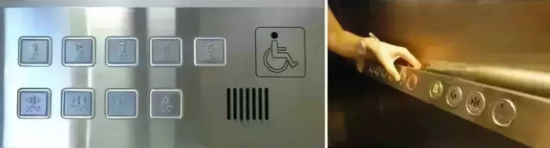 專用電梯按鈕附有盲文和語音播報系統(tǒng) / 高度適宜的樓層按鈕,還可充當(dāng)扶手